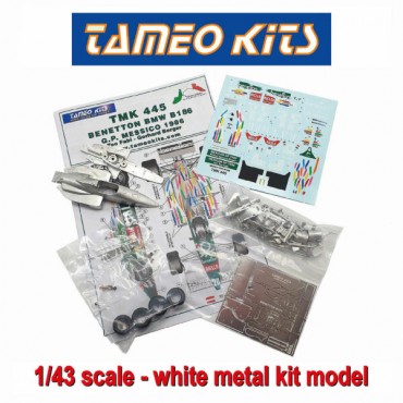 NEW, 1:43-SCALE, WHITE METAL KIT BY TAMEO KITS OF THE BENETTON BMW B186, 1986 DETROIT (USA) GP • POSSIBLE TO MAKE 1 OF 2 VERSIONS, GERHARD BERGER OR TEO FABI • NOW IN STOCK