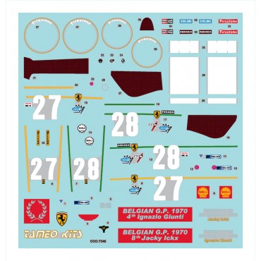 1:43-SCALE WHITE METAL KIT BY TAMEO KITS OF THE FERRARI 312B, 1970 BELGIAN GP, ICKX & GIUNTI