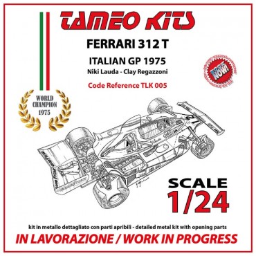 WORK IN PROGRESS, PRICE TO BE CONFIRMED NEW, 1:24-SCALE, DETAILED WHITE METAL KIT WITH OPENING PARTS BY TAMEO KITS OF THE FERRARI 312T, LAUDA (WORLD CHAMPION) & REGAZZONI, WINNER 1975 ITALIAN GP • POSSIBLE TO PRE-ORDER (WITH 10% DISCOUNT)