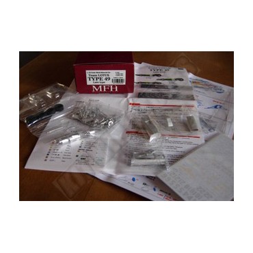 BACK IN STOCK 1:43-SCALE, MULTI-MATERIAL, SUPER-DETAILED KIT BY MODEL FACTORY HIRO OF THE LOTUS FORD 49 (EARLY TYPE), JIM CLARK & GRAHAM HILL 1967