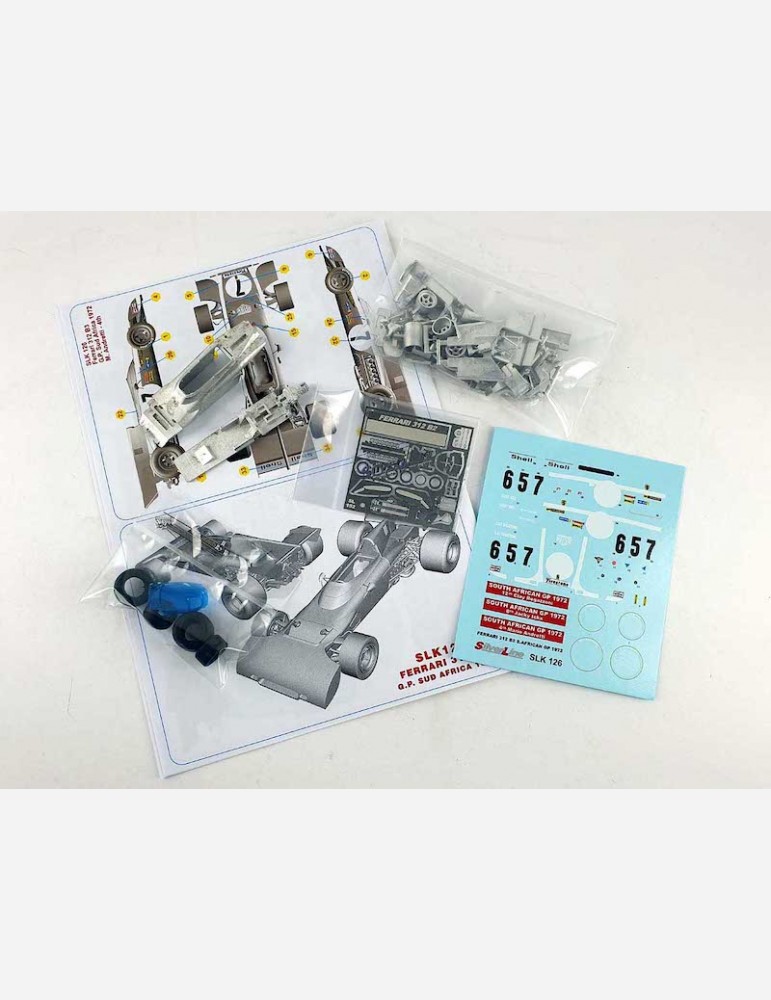1:43-SCALE WHITE METAL TAMEO SILVERLINE "EASY" KIT OF THE FERRARI 312 B2 • POSSIBLE TO MAKE 1 OF 3 VERSIONS FROM THE 1972 SOUTH AFRICAN GP