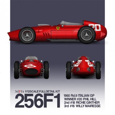 KIT MULTI-MATERIAUX, SUPER-DETAILLE MODEL FACTORY HIRO AU 1/12 DE LA FERRARI 256 F1 VAINQUEUR PHIL HILL GP D'ITALIE 1960 • POSSIBILITE DE FAIRE 1 DE 3 VERSIONS (VAINQUEUR #20, #18 OU #16)